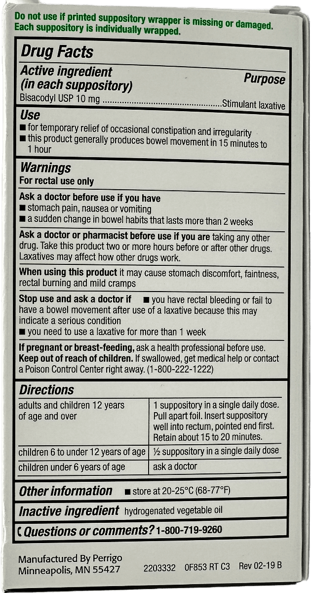 Bisacodyl Suppositories – USP 10 mg – 12 Ct