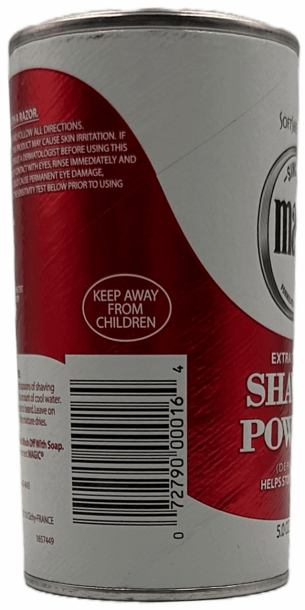Before using magic shaving powder for the first time, the following test must be performed. Wait at least 36 hours after using a razor or depilatory product before doing this test. Mix a half teaspoon of magic shaving powder with equal amount of cool water. Apply to one inch section of beard area. Leave on for no longer than five minutes. Moisten if necessary, rinse away thoroughly. Wait 24 hours. If there are no signs of irritation or redness, follow directions.