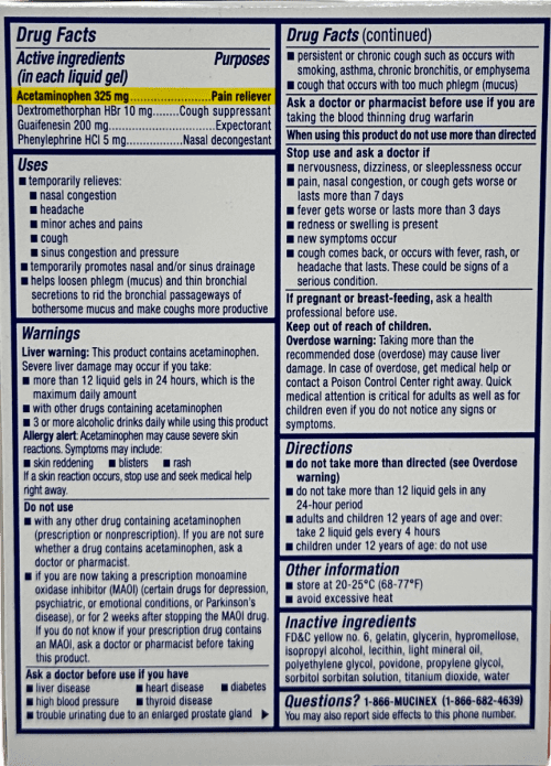 | Guaifenesin 1200 mg | Expectorant |