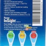 Fever InSight helps you interpret temperatures by using a color-coded display. A GREEN screen indicates a normal temperature, YELLOW indicates a fever, and RED indicates a high fever.